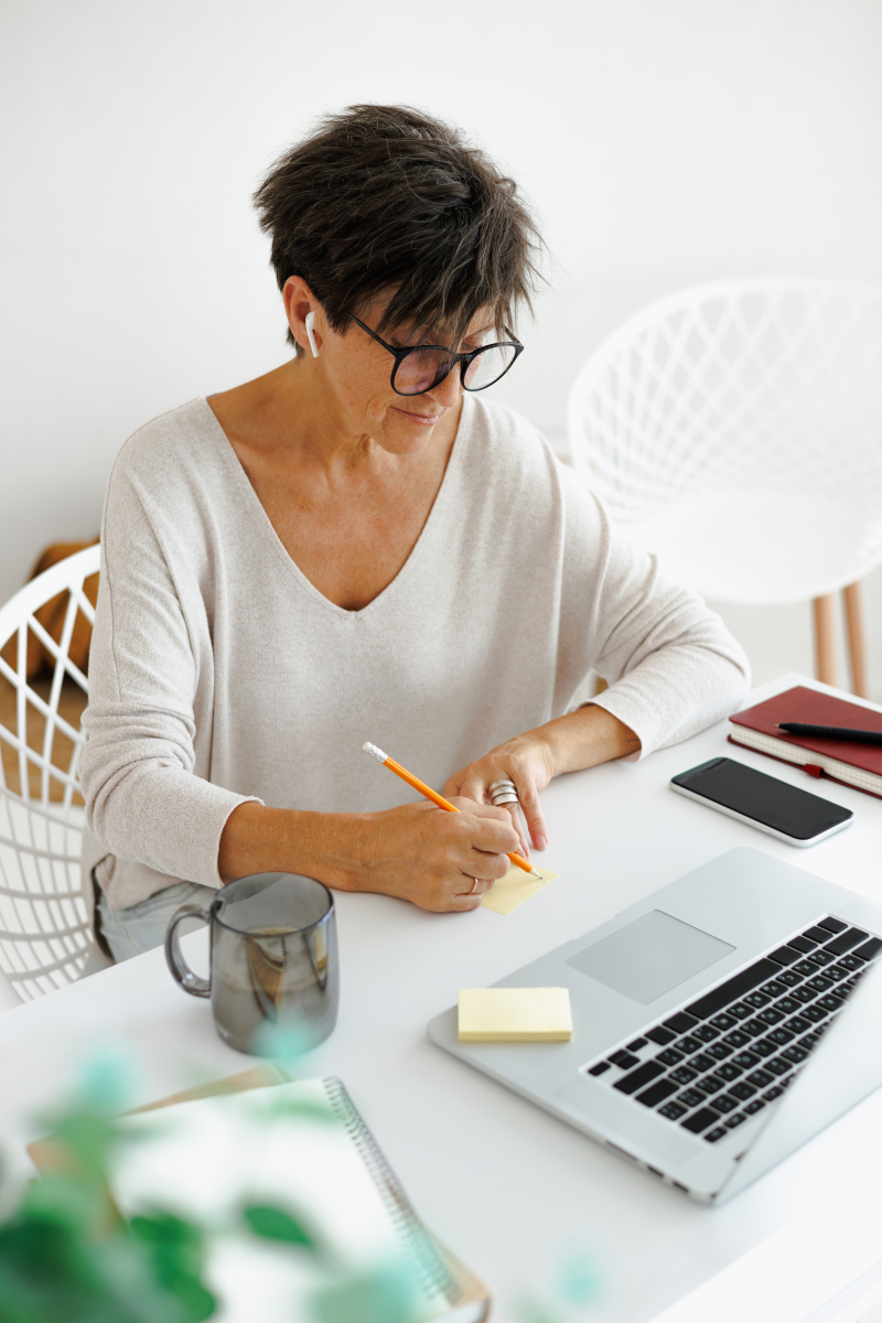 在冠状病毒大流行期间在家办公的自由职业者打开笔记本电脑与空白屏幕