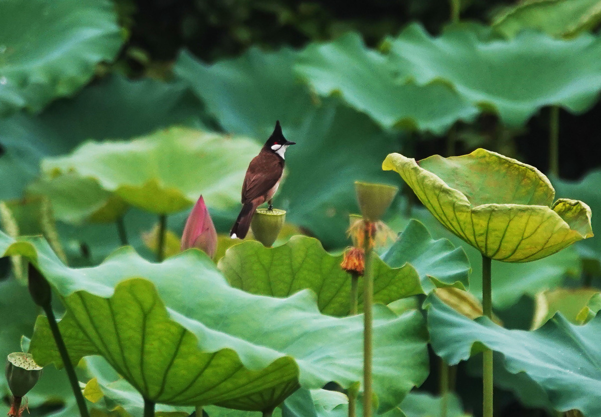 荷花满塘绿 静思享夏意 忽来阵阵风 叶翻翻叶去