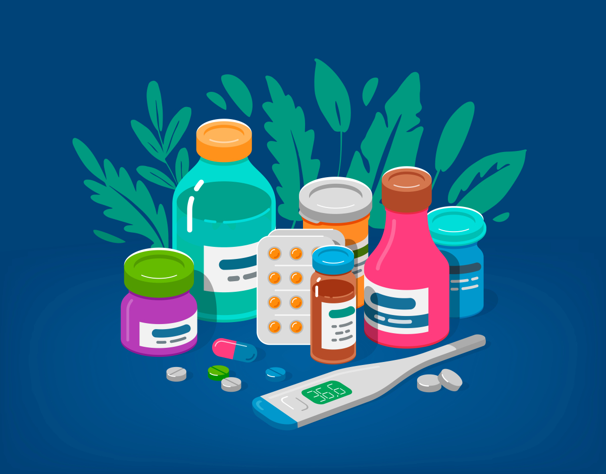 卡通扁平蓝色背景上药品药丸胶囊插画 _站酷海洛_正版图片_视频_字体