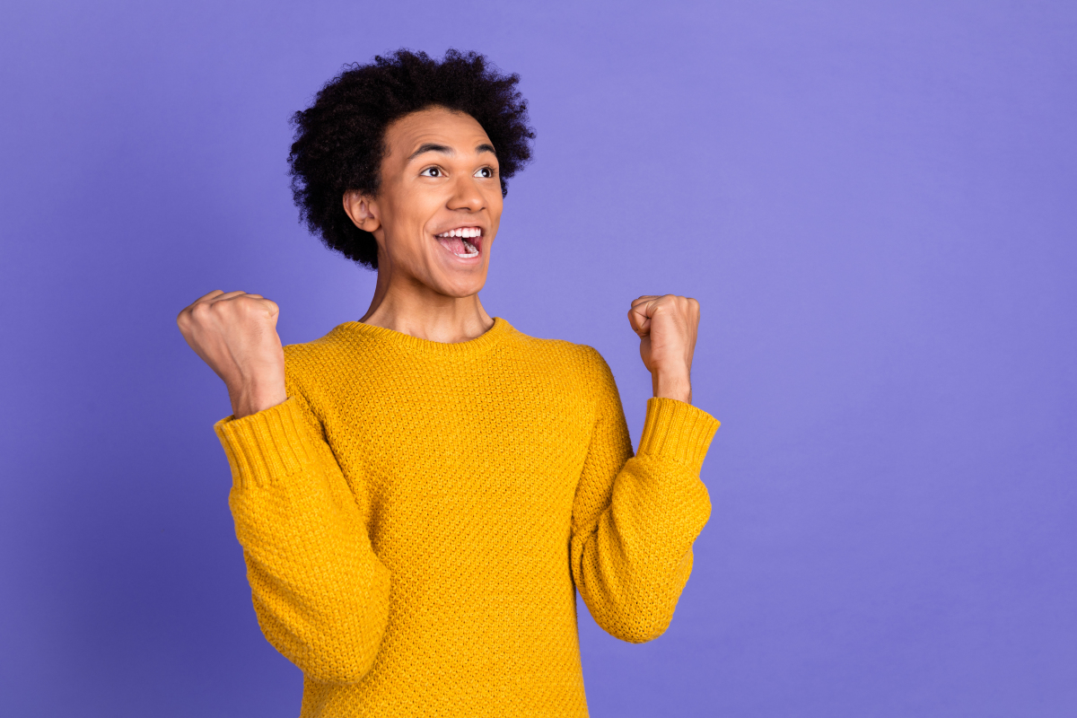兴奋成功的年轻人大喊大叫,庆祝胜利